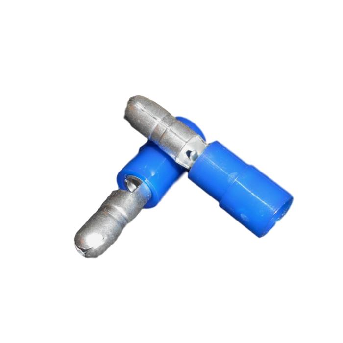 Terminal cilíndrico macho semiaislado en color azul, diseñado para asegurar conexiones