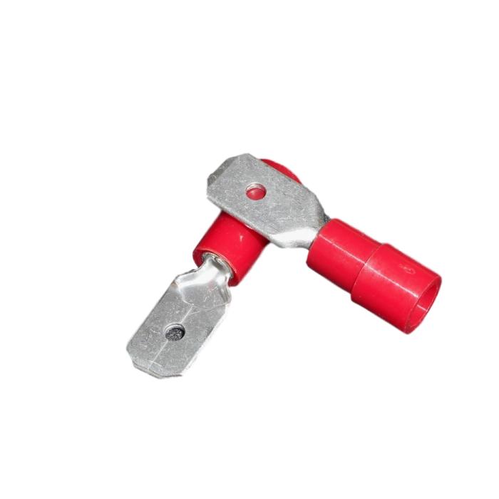 Terminal eléctrico tipo Faston macho de 6.3 mm, completamente aislado con casquillo de PVC en color rojo. Fabricado con latón estañado para asegurar una excelente conductividad y durabilidad. Diseñado para facilitar el montaje en sistemas eléctricos mediante conexiones rápidas y seguras.