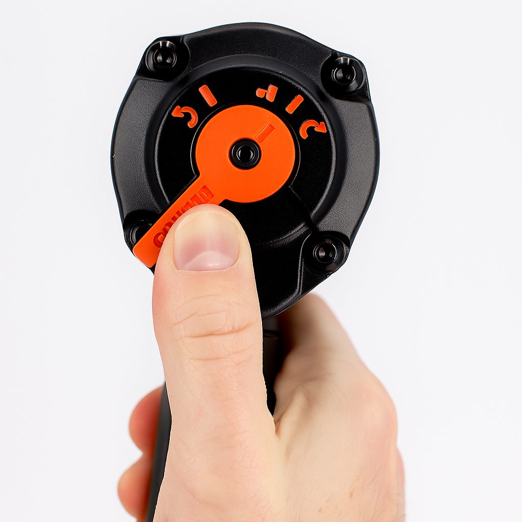 - Interruptor práctico de giro horario y antihorario, cómodo incluso con guantes.