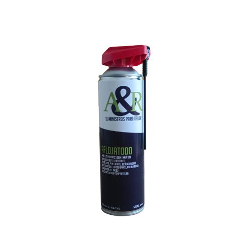 El Aflojatodo Plus MF10 es un spray lubricante multifunción 10 en 1 con válvula pulverizadora de 360°, ideal para uso en talleres, hogares, garajes, jardines e industria.