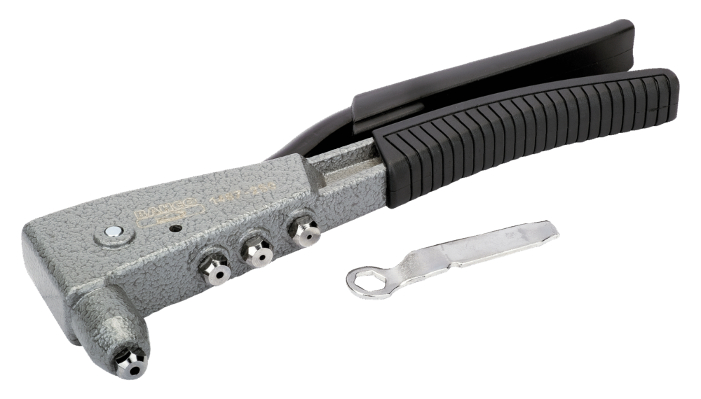 La remachadora manual de Bahco está diseñada para ofrecer un trabajo preciso y práctico en tareas de fijación. Permite colocar remaches de diferentes tamaños, adaptándose a distintas necesidades de uso.